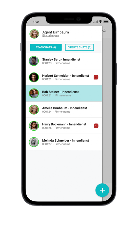 Teamchat und direkte Chat immer griffbereit.
